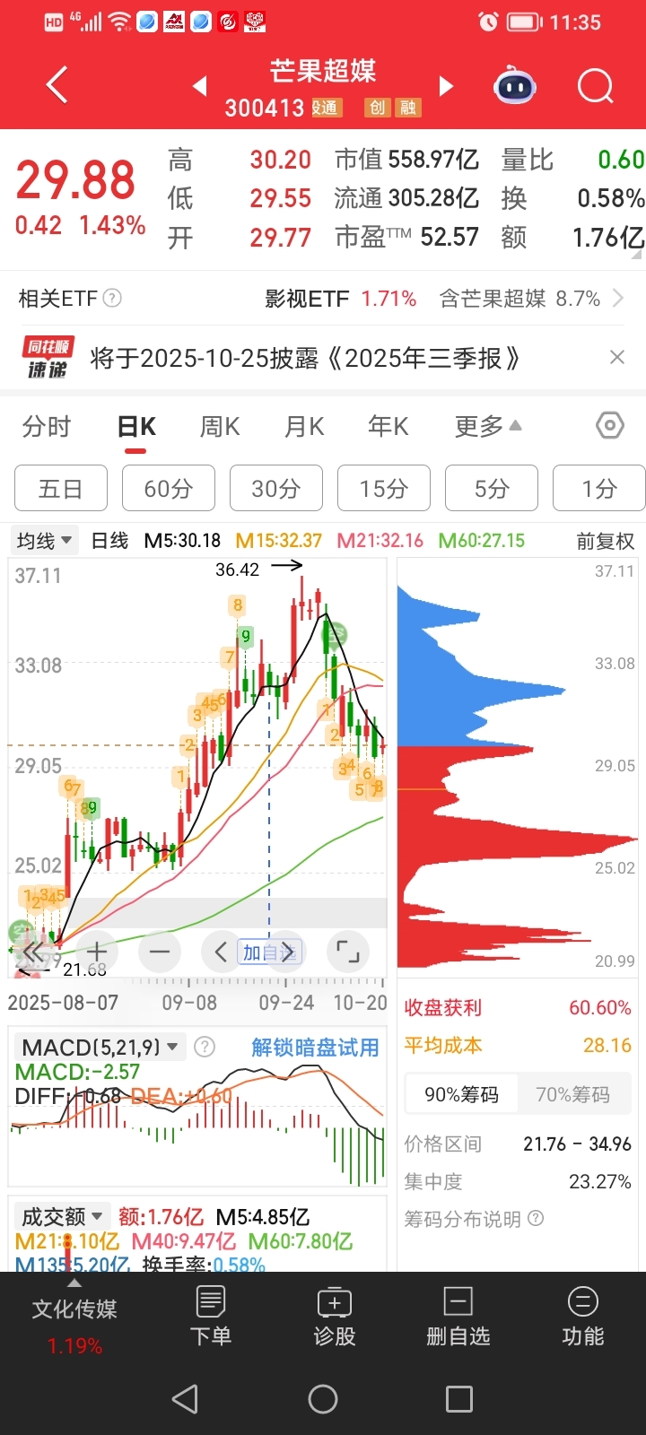 芒果超媒从个位数到92,是一轮涨势,有涨必有跌跌回起点才是来时路的本面目。