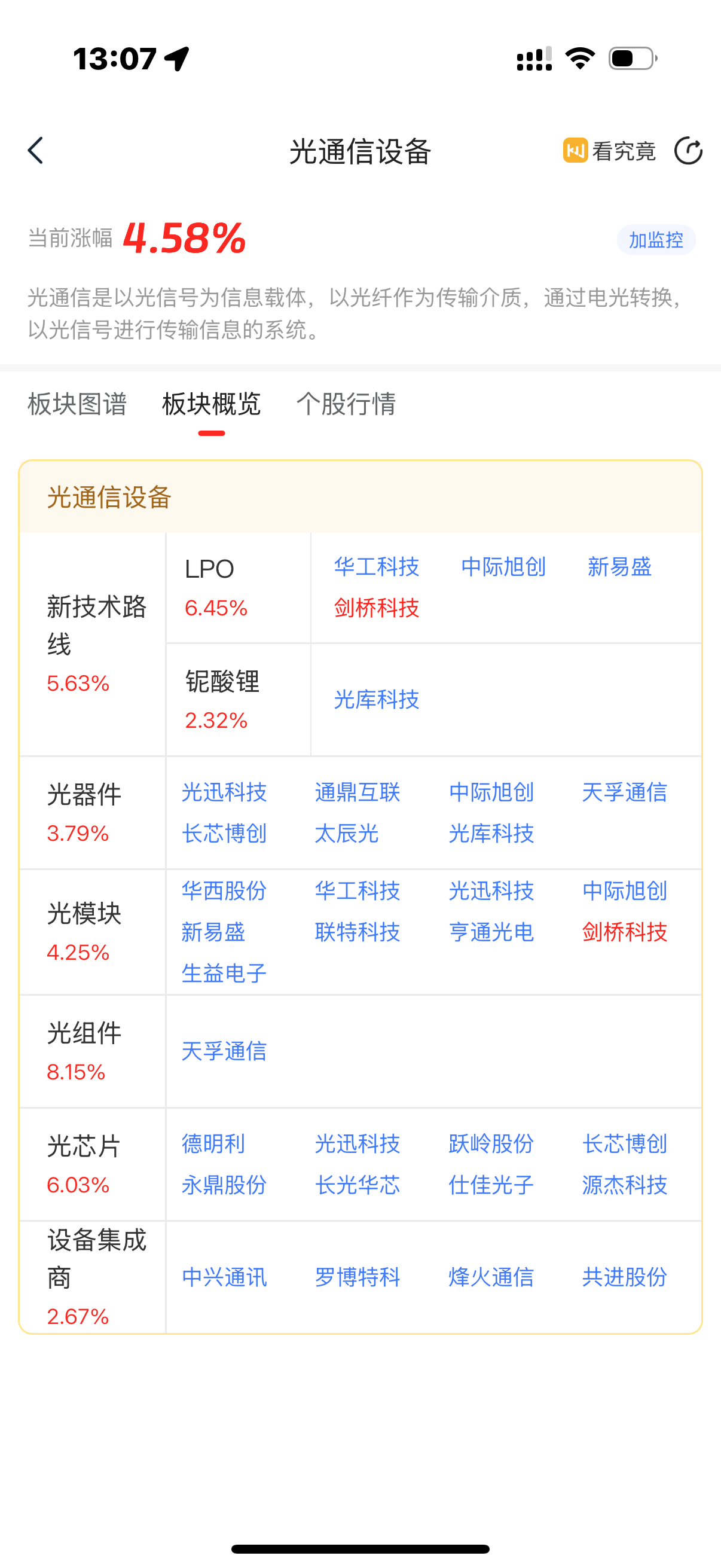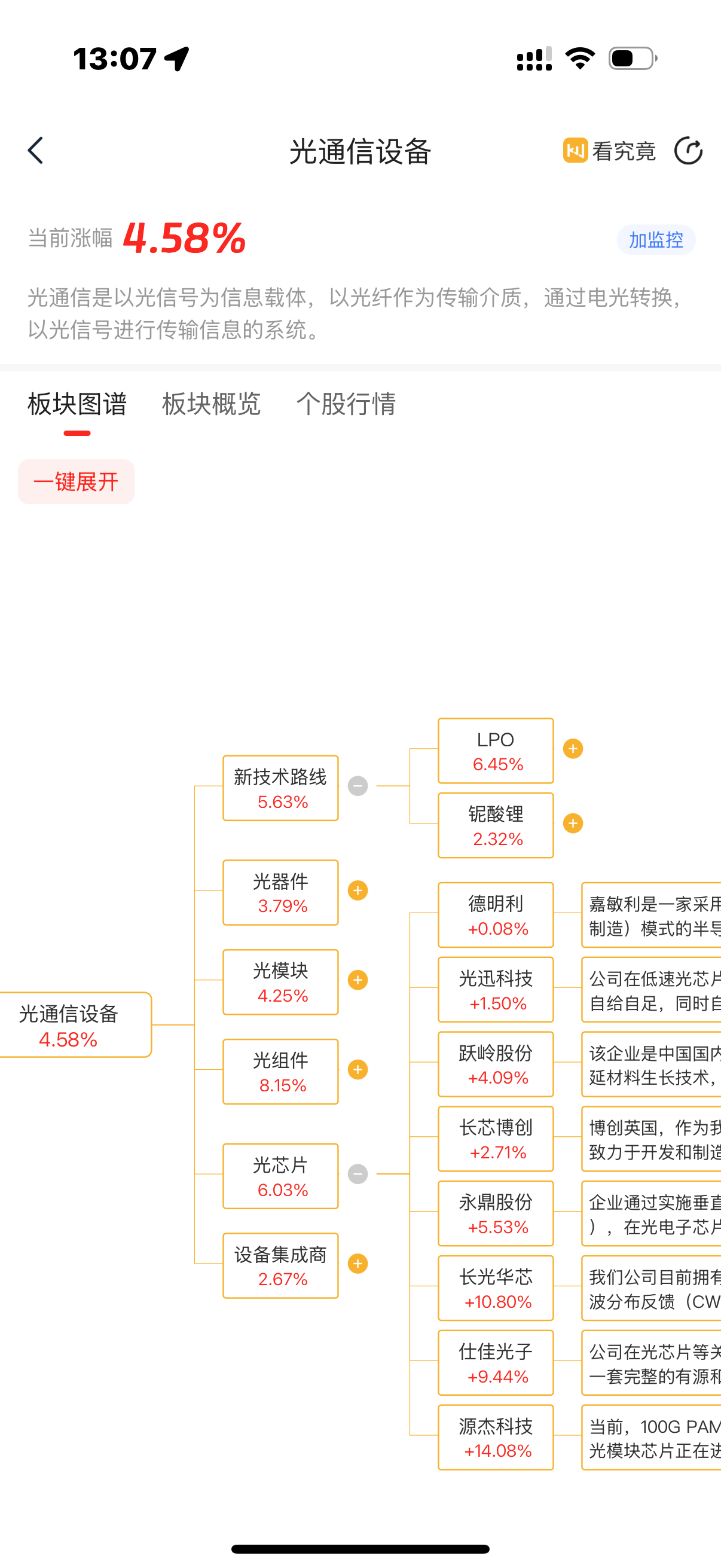 光通信设备板块没有这么全过,这不是随随便便就看清楚都有哪些次级概念突然爆火了吗