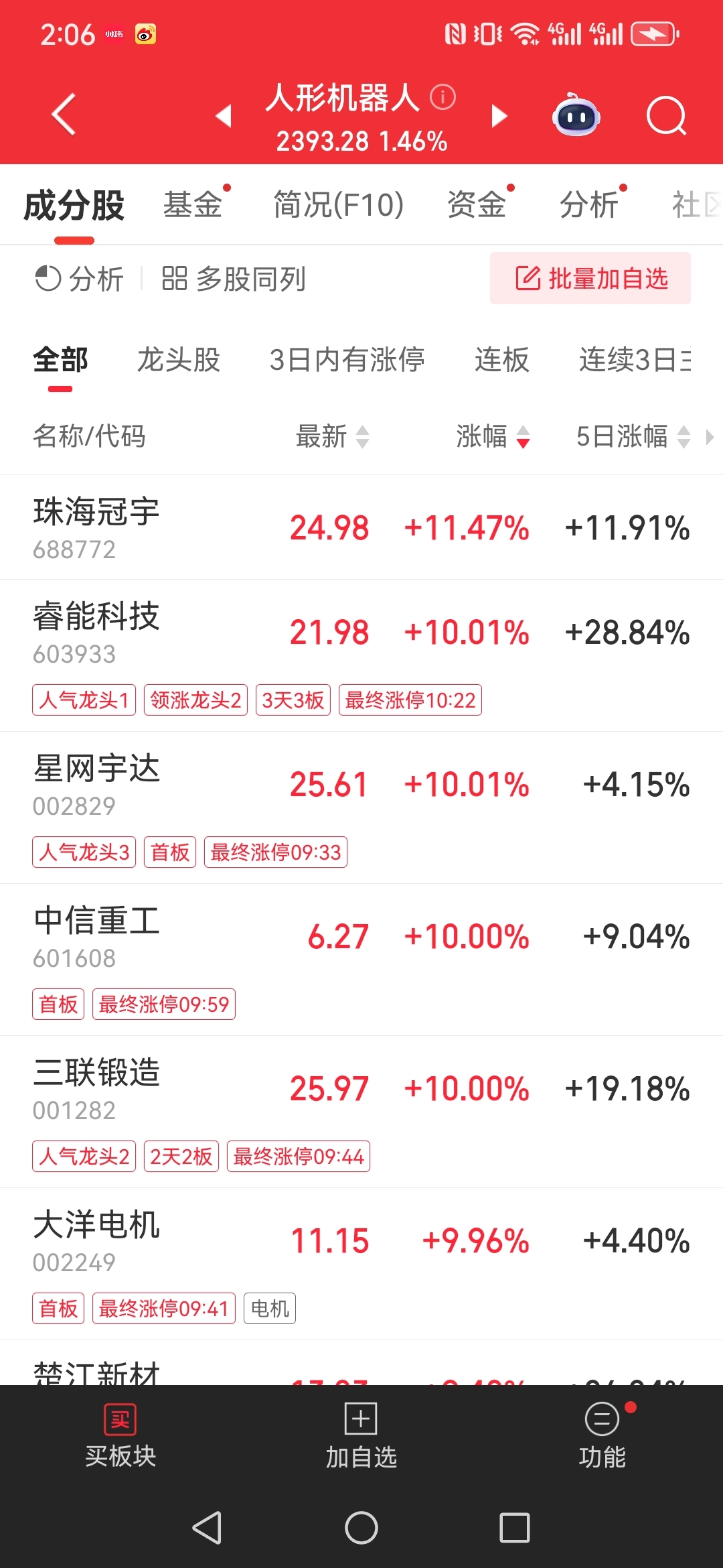 人形机器人概念板块目前表现不错,板块中睿能科技,星网宇达,中信重工,三联锻造,大