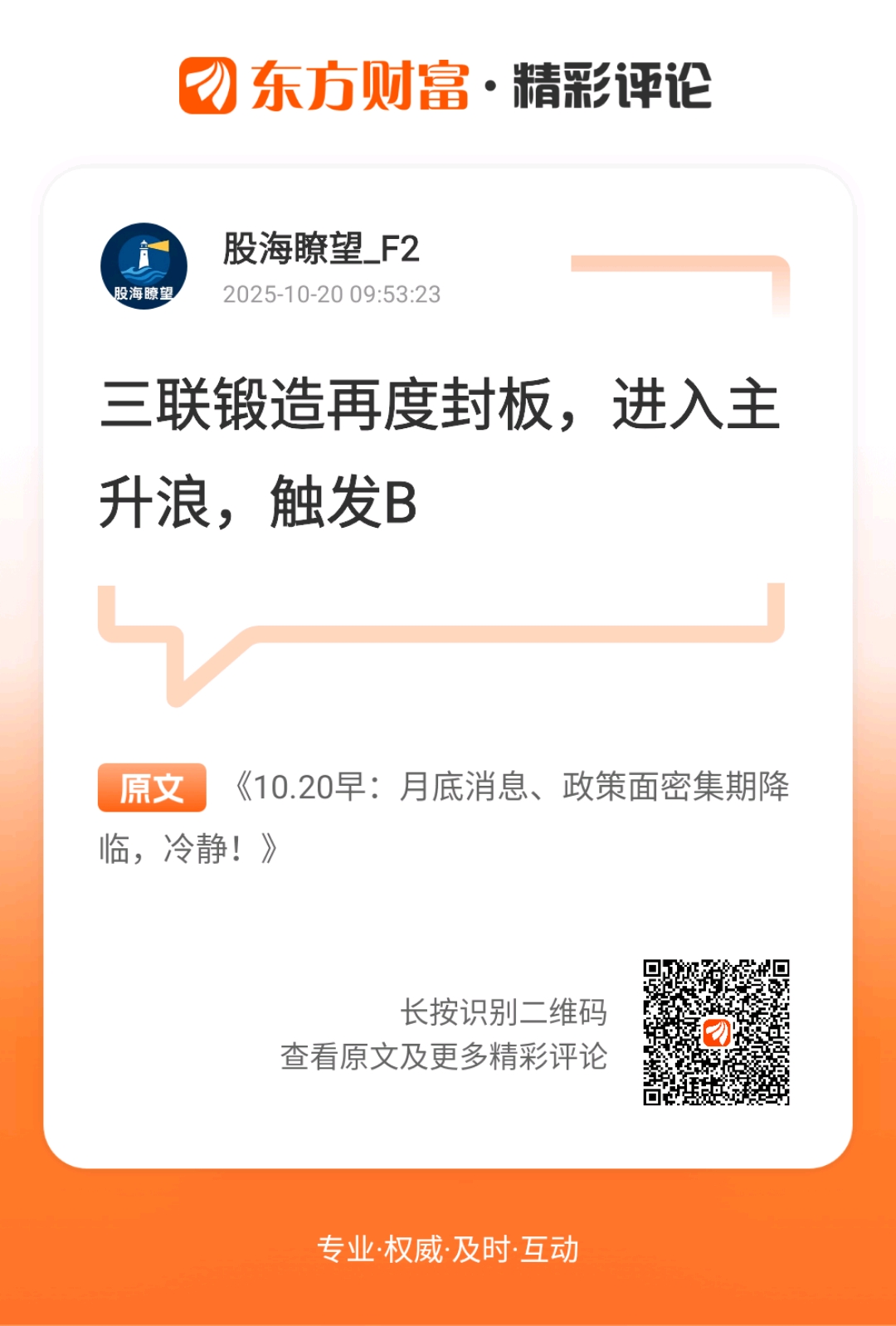 //@股海瞭望_F2 :三联锻造再度封板,进入主升浪,触发B