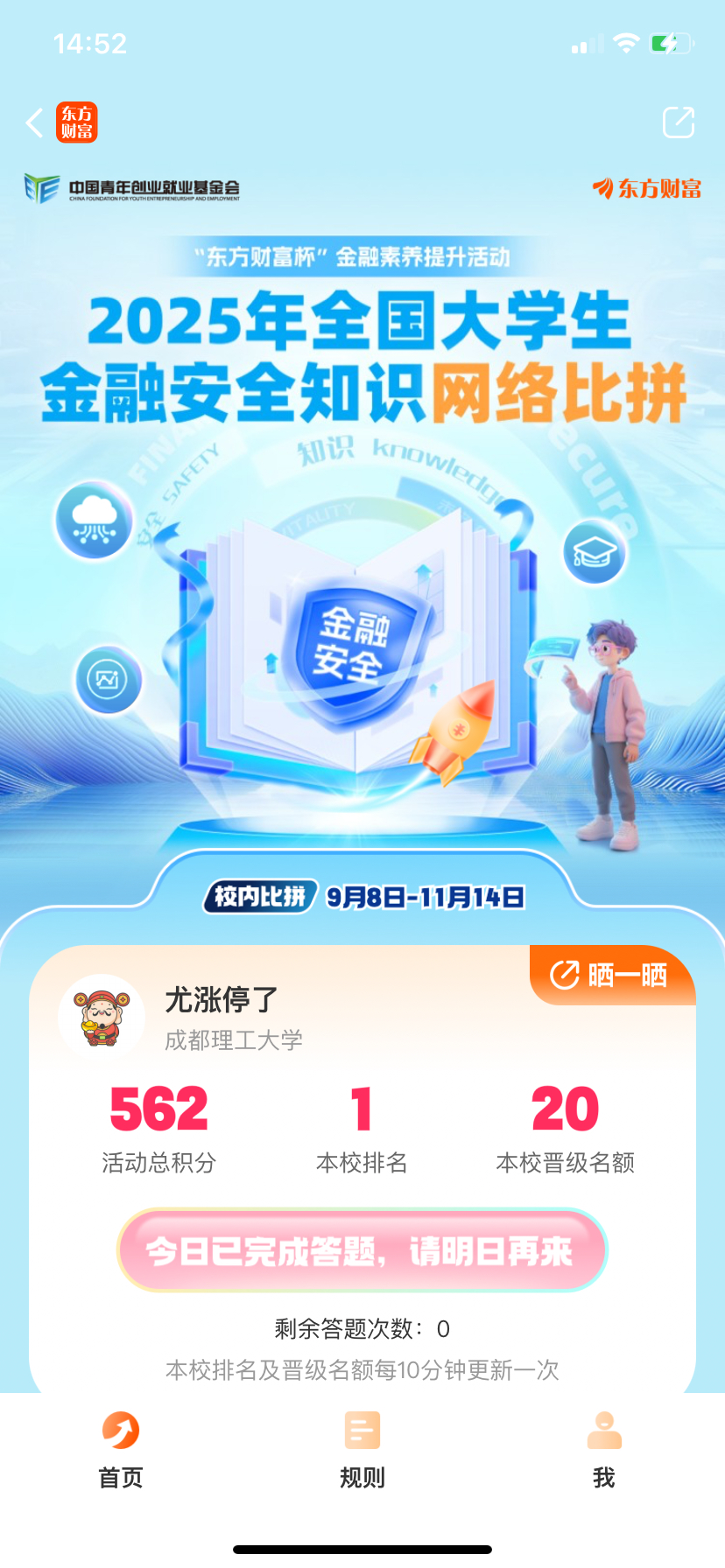 成理不卷,没多少人参赛。另一个比赛人比较多#2025金融安全知识网络比拼#