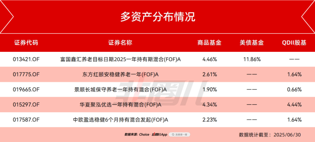 结合二季报来看,几只FOF,在商品、QDII、美债上的仓位分布,大概是这样的——