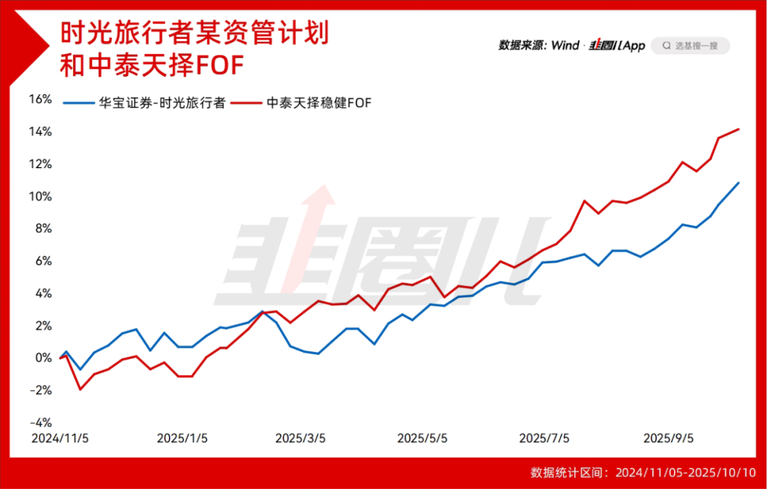 从我个人关注的产品角度,不管是唐军的中泰天择稳健FOF,还是华宝证券时光旅行者,就是这种案例。