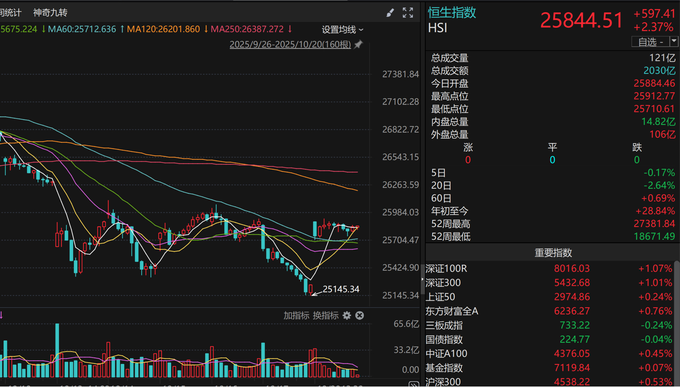 #收盘点评# #股市怎么看# 从恒指今天30分钟走势来看,A指其实是没有风险的,整个市场都在期待科技回归,因为失去主线的市场短短不到一个月时间就让散户亏损掉大半年的利润。明天恒指应该会攻击上个星期的高点26113去回补缺口,A指让它在这个区间里多震荡一下也没什么不好。很多跌超并且K线形态被破坏的个股还需要更长的时间,需要多一些耐心;量化只会破坏超短期预谋,但并不会扭转和改变最终目标。