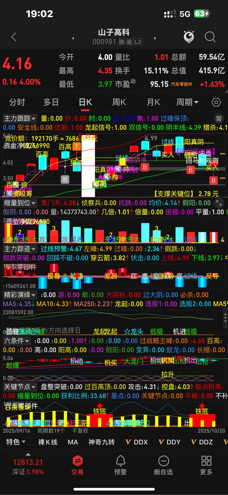 山子高科站上高量底4.01,平量蓄势,今天刚好攻击大阴二一鬼门关4.35一分不差