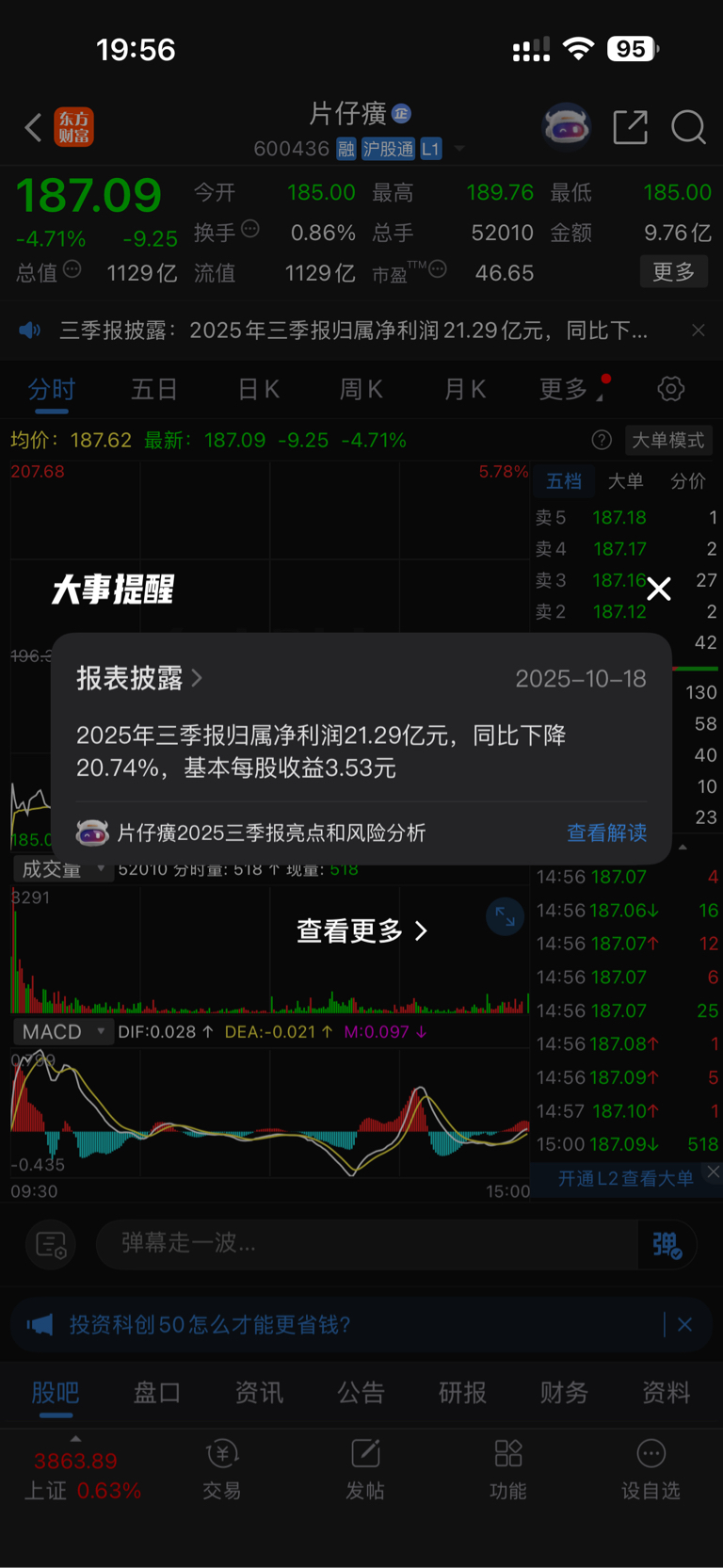 预计 片仔癀会进入杀估值阶段。18 年的时候东阿阿胶也曾杀估值到 25 元以下,但是咱也不能刻舟求剑。