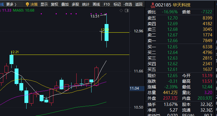 华天科技:国内龙头封测巨头之一,更是全球图像传感器(CIS)封装领域的绝对龙头,收购羿微电华可进一步完善公司的技术链,有助于公司打入国际高端市,公司获得大基金认可,整体位置很低,复盘走出T字板,次日直接走弱,周一盘中分歧很大,今天主要关注能否弱转强,开盘若是能快速站稳12.95上方,有反包预期,若是代开回踩12.2不破,也是是周二5天均线的位置,视盘面情况低吸;