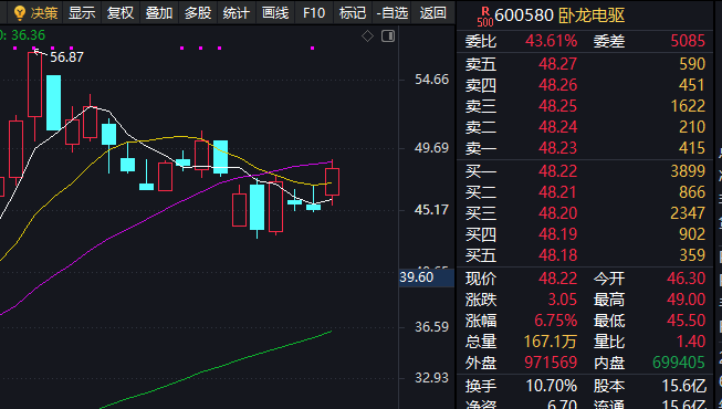 卧龙电驱:全球领先的电机及驱动解决方案制造商,既是宇树科技的供应商,又是战略投资者,受益宇树IPO。该股也是机器人板块趋势品种,连续调整一个月,当前有企稳迹象,该品种主要是以低吸为主,计划是回踩10天均线47.2左右小仓位跟上,若是开盘高开则会放弃,现在市场缺量,高开容易是坑。