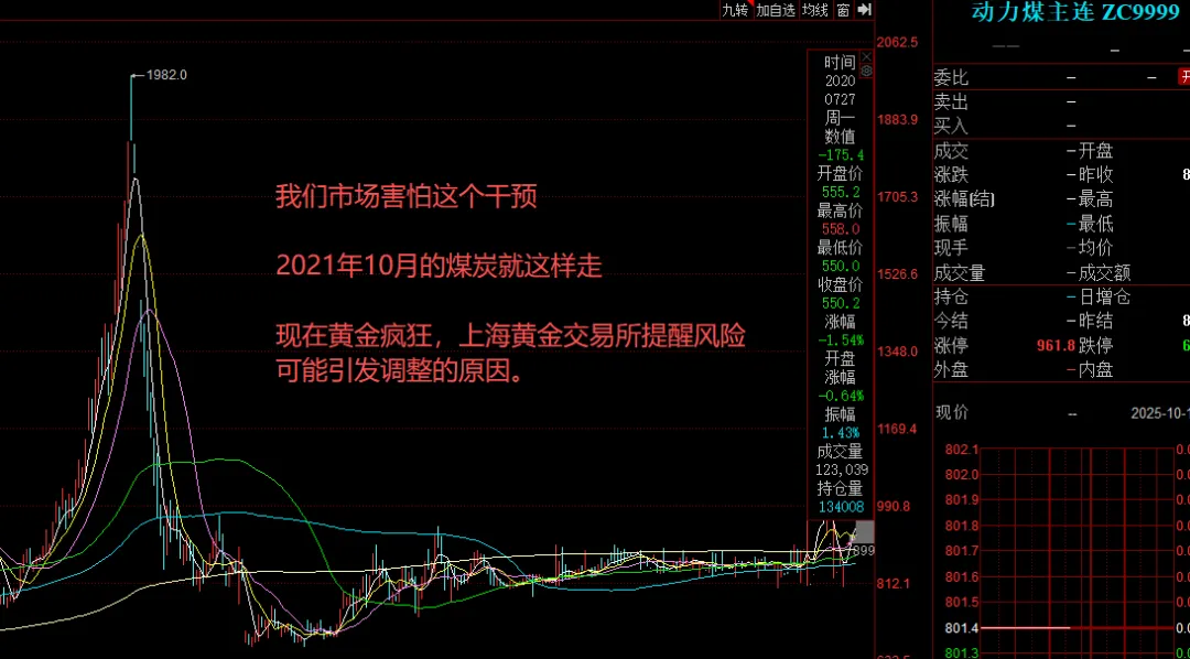 那,黄金期货持续大涨,会不会出现煤炭那样的干预?这个真不好说。但整体黄金是国际化的贵金属,对民生不会发生至命性的灾难。而且哪有这么好事啊,对吧。如果国际黄金持续上涨,我们却来个低价控制给市场,那得是多好的福利啊?想想,不太可能。对不对,这不是楼市,不是煤炭,对民生不会发生致命性冲击。所以我觉得,黄金板块的震荡,可能只是虚惊一场。因为国际黄金市场还是非常强势,作为货币之王,超30万亿美元市值,这个波动可不易。好了,这个就聊到这。