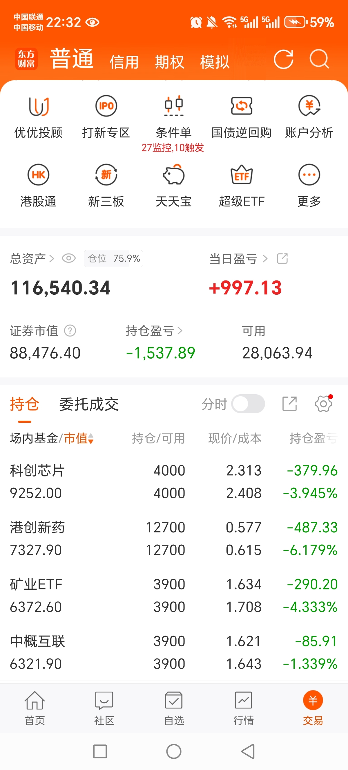 #复盘记录# 仓位75.9%,观察27笔成交了10笔,今天科技迎来了网格卖出的机会。不管是科创芯片、电池,还是中概互联,都有了一定的空间。