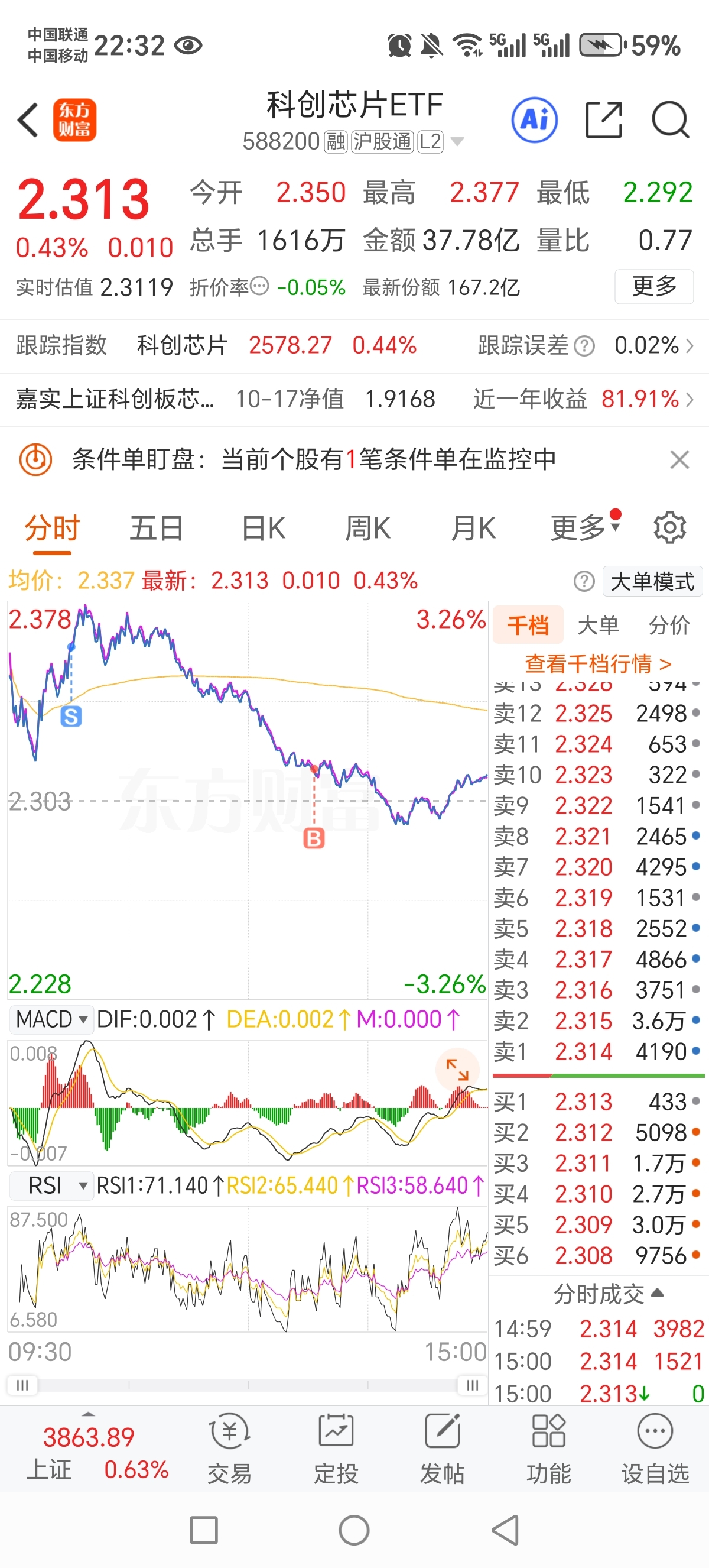 仓位75.9%,观察27笔成交了10笔,今天科技迎来了网格卖出的机会。不管是科创