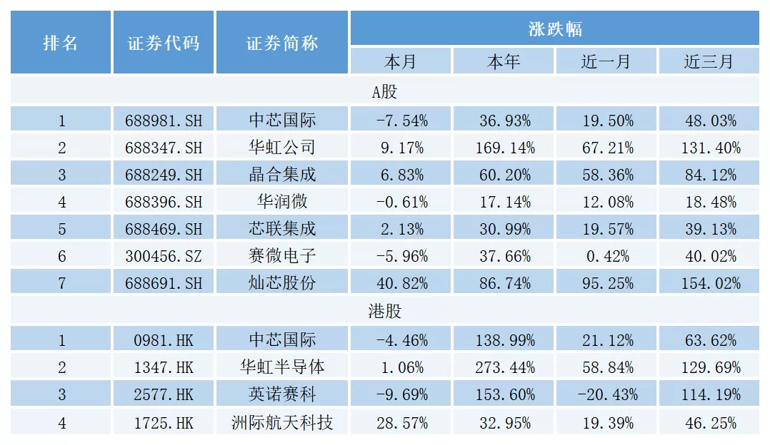 华虹半导体的发展前景得到了投资者认可。今年以来,华虹半导体A股涨幅169.14%,港股涨幅273.44%,均远超行业老大中芯国际。