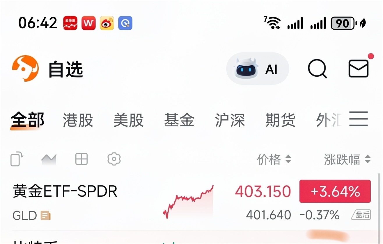 与在今天早上。观察全球最大黄金ETF在盘后表现是跌-0.37%