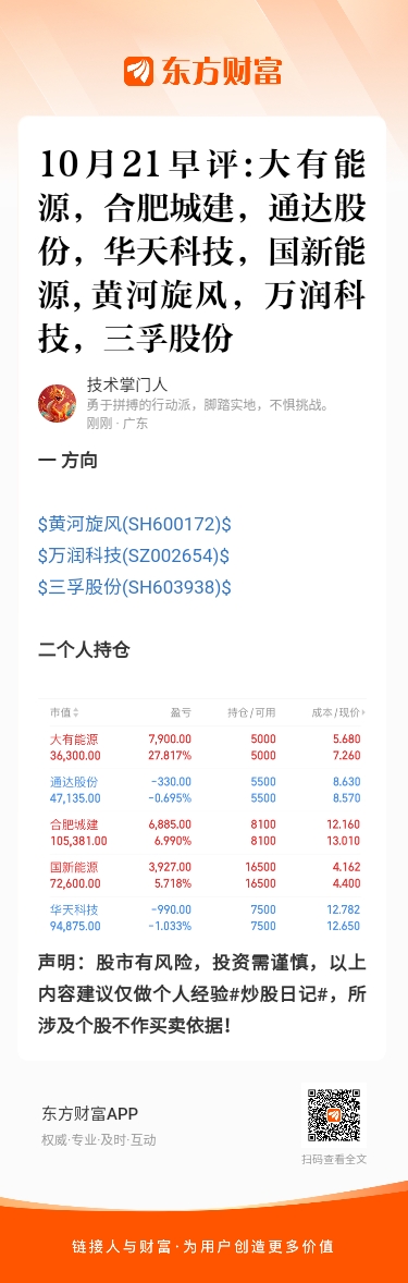 郑重声明:用户在财富号/股吧/博客等社区发表的所有信息(包括但不限于文字、视频、音频、数据及图表)仅代表个人观点,与本网站立场无关,不对您构成任何投资建议,据此操作风险自担。请勿相信代客理财、免费荐股和炒股培训等宣传内容,远离非法证券活动。请勿添加发言用户的手机号码、公众号、微博、微信及QQ等信息,谨防上当受骗!