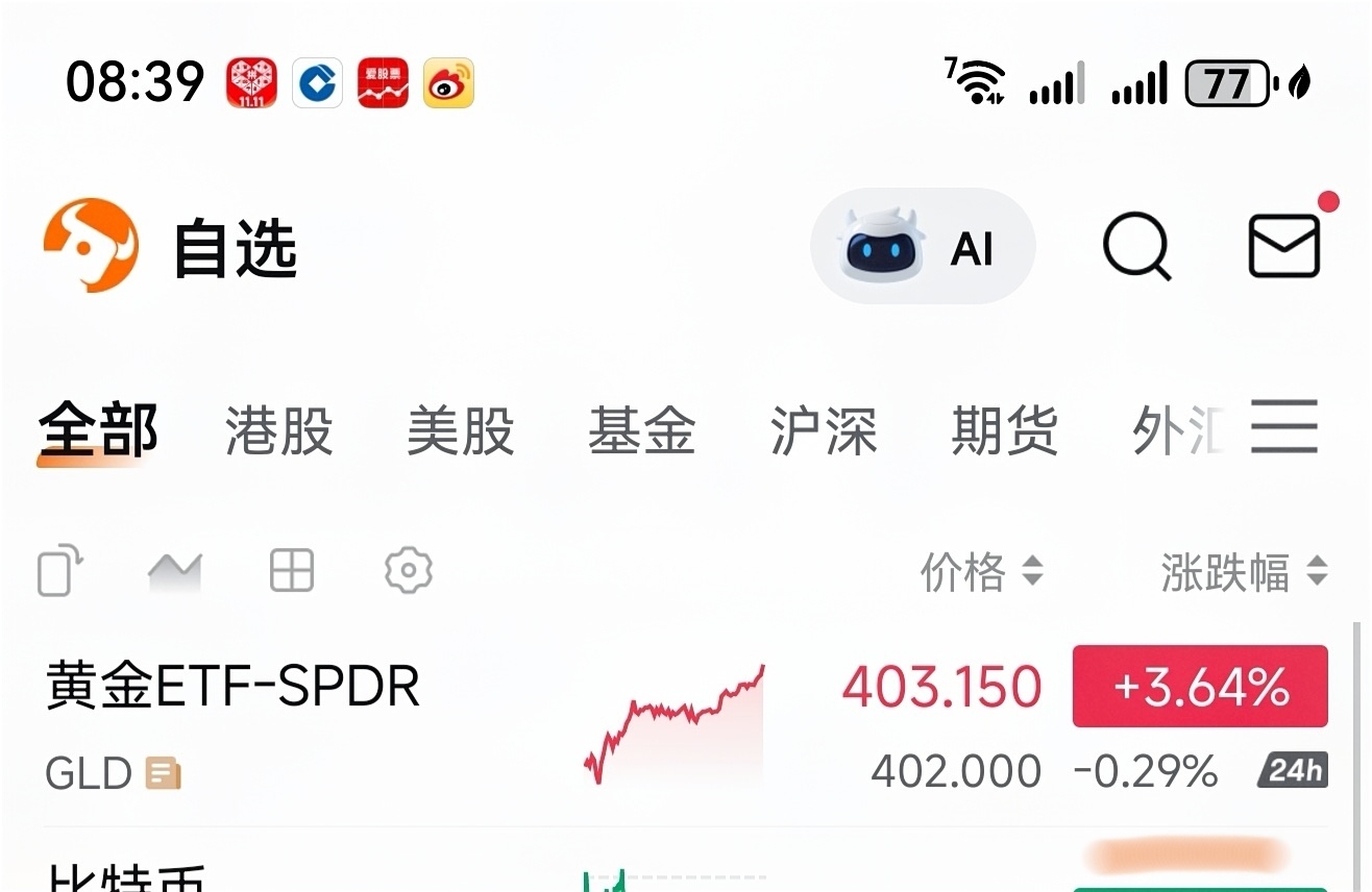 在今天上午8点39分,观察全球最大黄金ETF在夜盘表现是跌-0.29%