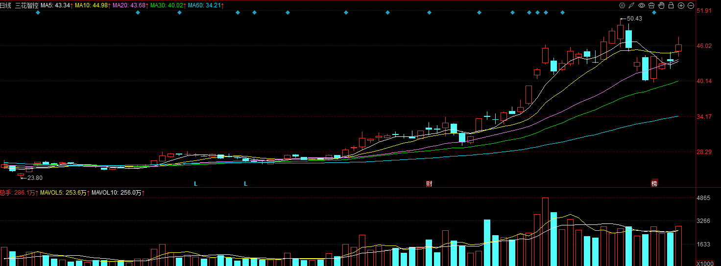 三花智控002050:三花智控是全球汽车热管理领域龙头,更是人形机器人执行器核心部件关键供应商,深度绑定头部车企与科技企业,技术壁垒深厚。近期走势先经历震荡调整,随后强势反弹,昨日再度大涨,盘中虽有短暂下探但快速回升,量能随行情放大,紫金承接扎实。消息面,人形机器人板块受订单利好共振走强,公司上调回购股份价格上限,且业绩预增彰显基本面稳健。技术面处于多头行情且有加速上涨趋势,短期成本线支撑有力,今天有望延续冲高态势。值得期待。$三花智控(SZ002050)$