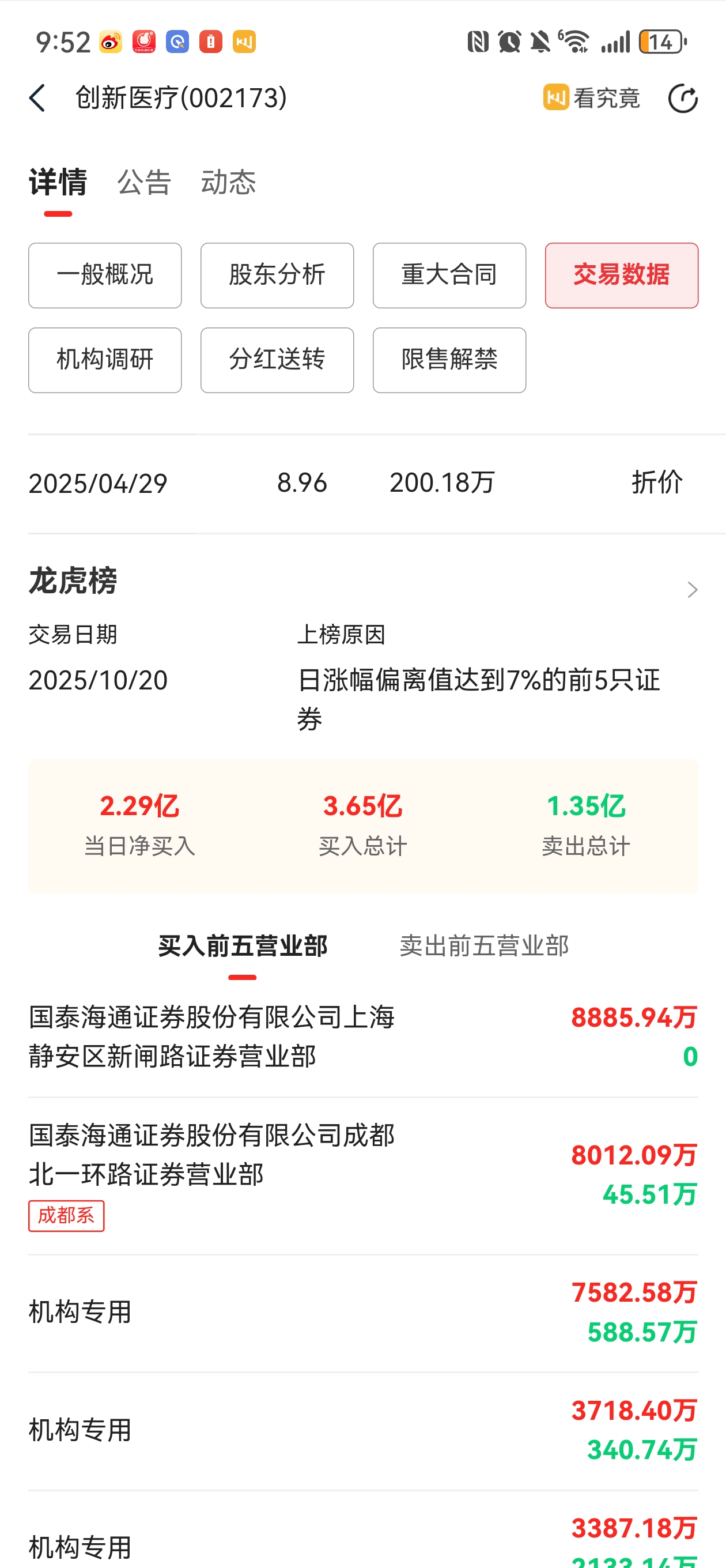 昨天成都系游资买了8000多万的创新医疗,成都系游资以短线著称,快进快出,经常一