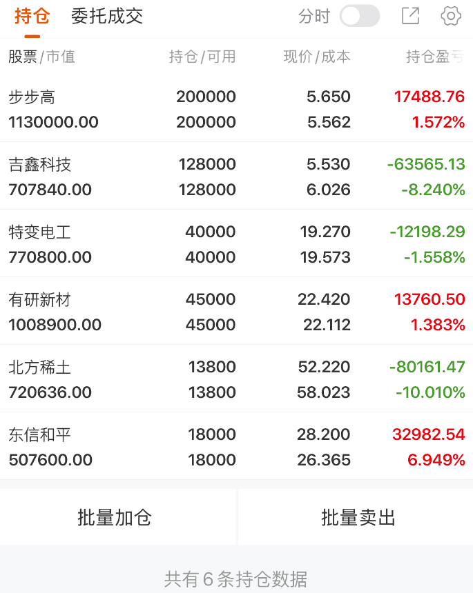 二 :今日持股情况