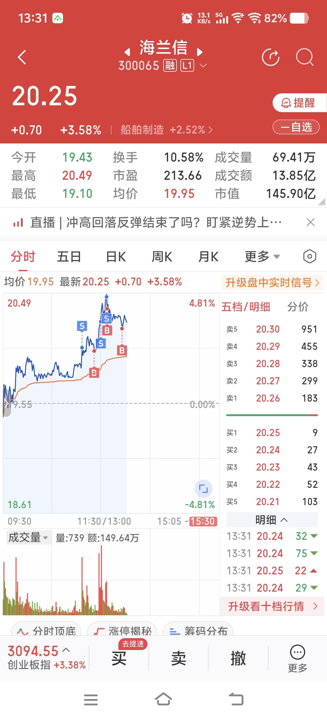 今天任务完成,仓位不变。盘中第1个T,见势不妙,亏100多元果断接回来了!