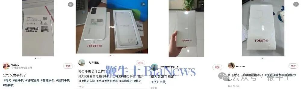 网友们在社交平台晒出了格力发放给员工的手机。