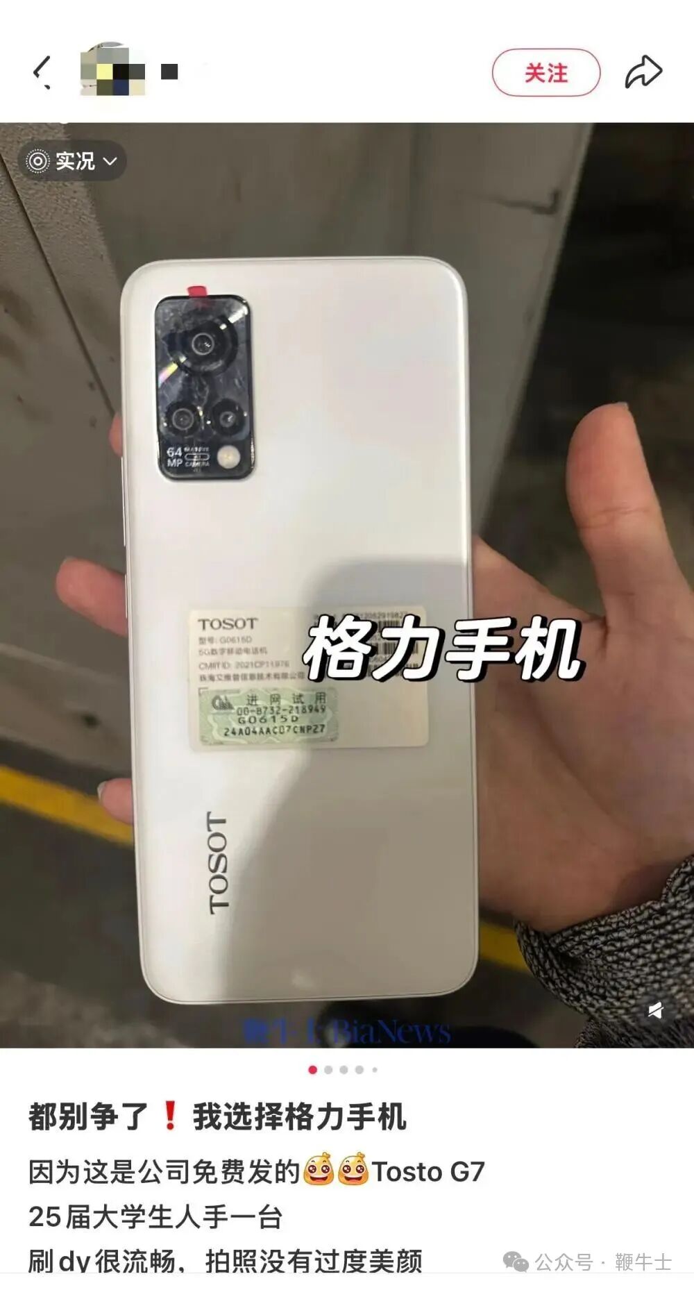还有网友称,此款手机是格力免费发放,25届大学生人手一台。