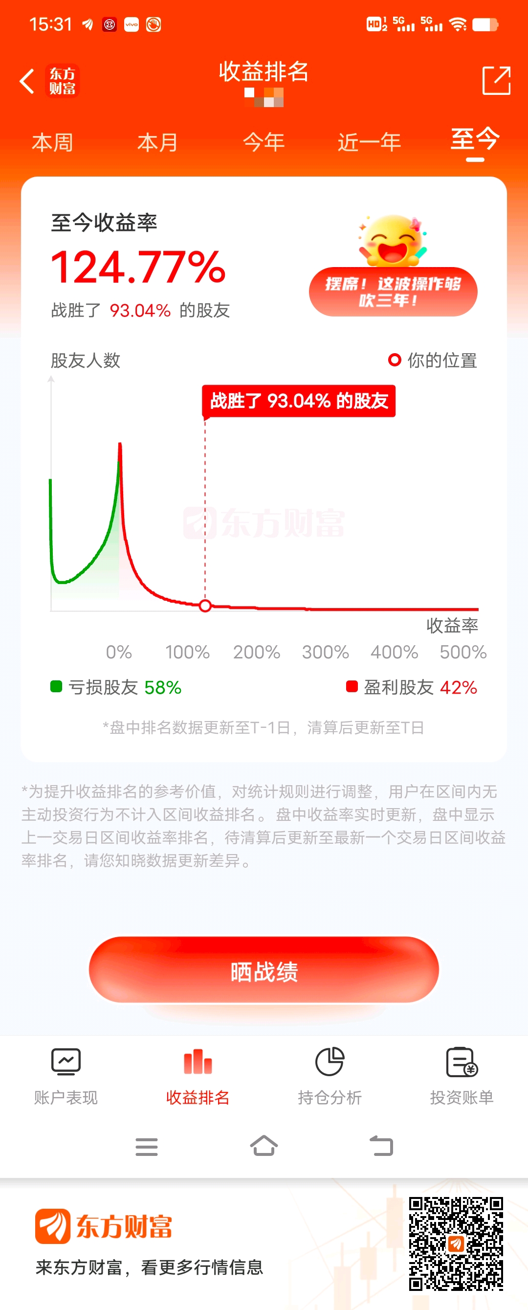 #炒股日记# 自从在东方财富证券开户以来总体收益率达到100%!