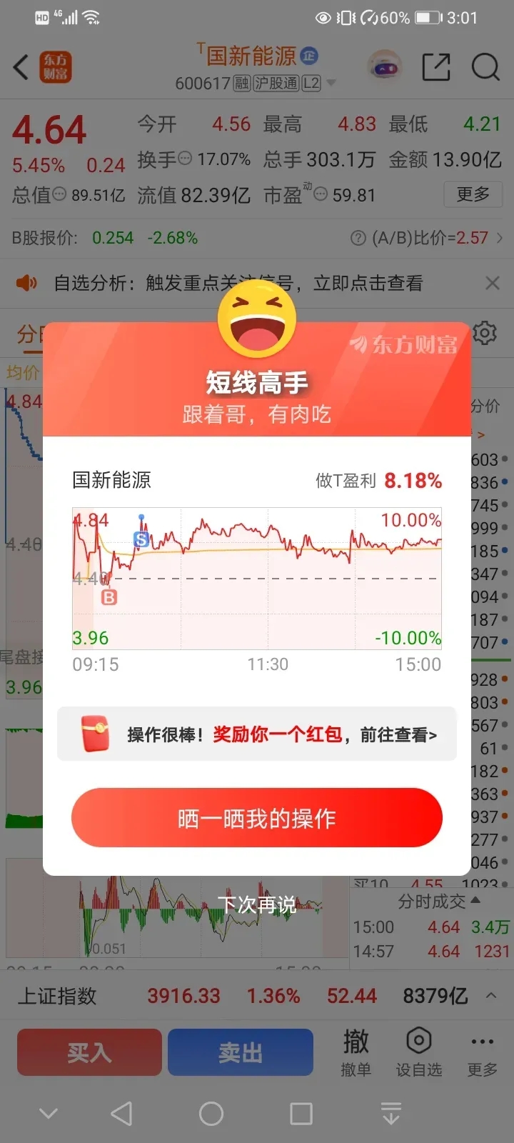 今日实盘记录:1,国新能源,红1点附近低吸,红9个点出了做T,它是天然气的龙头,