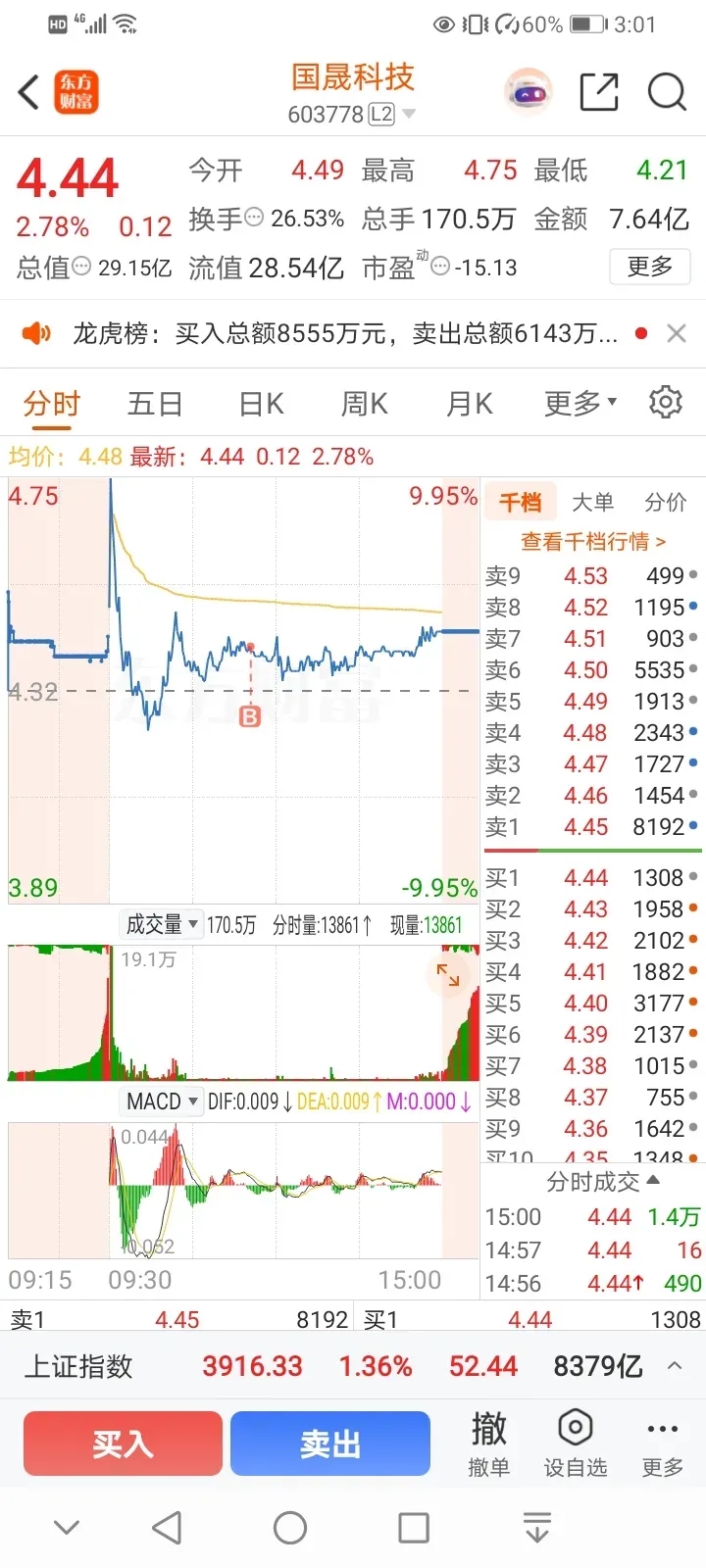 今日实盘记录:1,国新能源,红1点附近低吸,红9个点出了做T,它是天然气的龙头,大有能源是煤炭的龙头更强。2,低吸强势股国晟股份,已经调整三天了,今天不涨,明天也应有个冲高才对,这是买它的出发点,锂电题材。