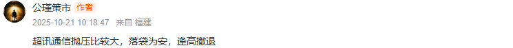 超迅通信603322:作为通信技术服务领域的资深企业,该股今日大幅高开后,便显现出较大抛压。最终导致股价冲高回落。预计该股短期内仍将处于强势分歧状态。在这种情况下,选择落袋为安、先行下船。