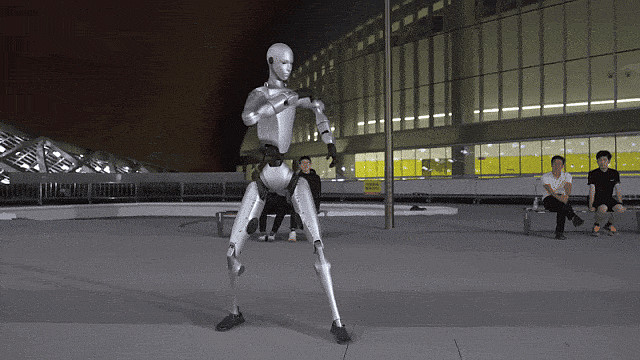 虽然身高和H1一致,但H2最大的亮点在于:一是配备仿生人脸,眼睛、鼻子、嘴巴高度拟人化,从外观上来看眼睛可能具有感知功能;二是动作更加灵活流畅了,能完成舞蹈、功夫等复杂动作。