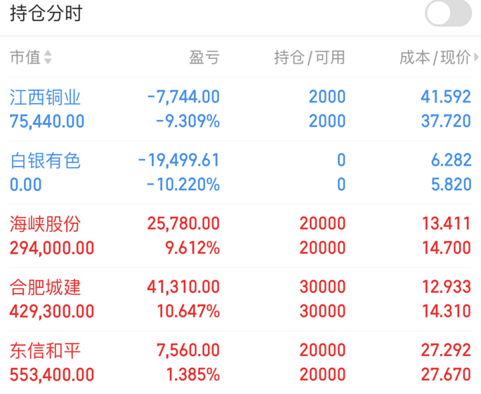 白银有色:今天表现缺乏明显回升动力,整体走势偏弱,未见有效突破。主力持续观望或撤出,凑码集中度低,缺乏控盘迹象。上方套牢盘压力仍在,短期若支撑位被突破,可能出现下行风险,走为上计。