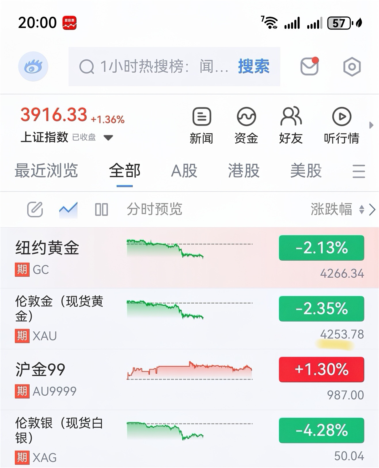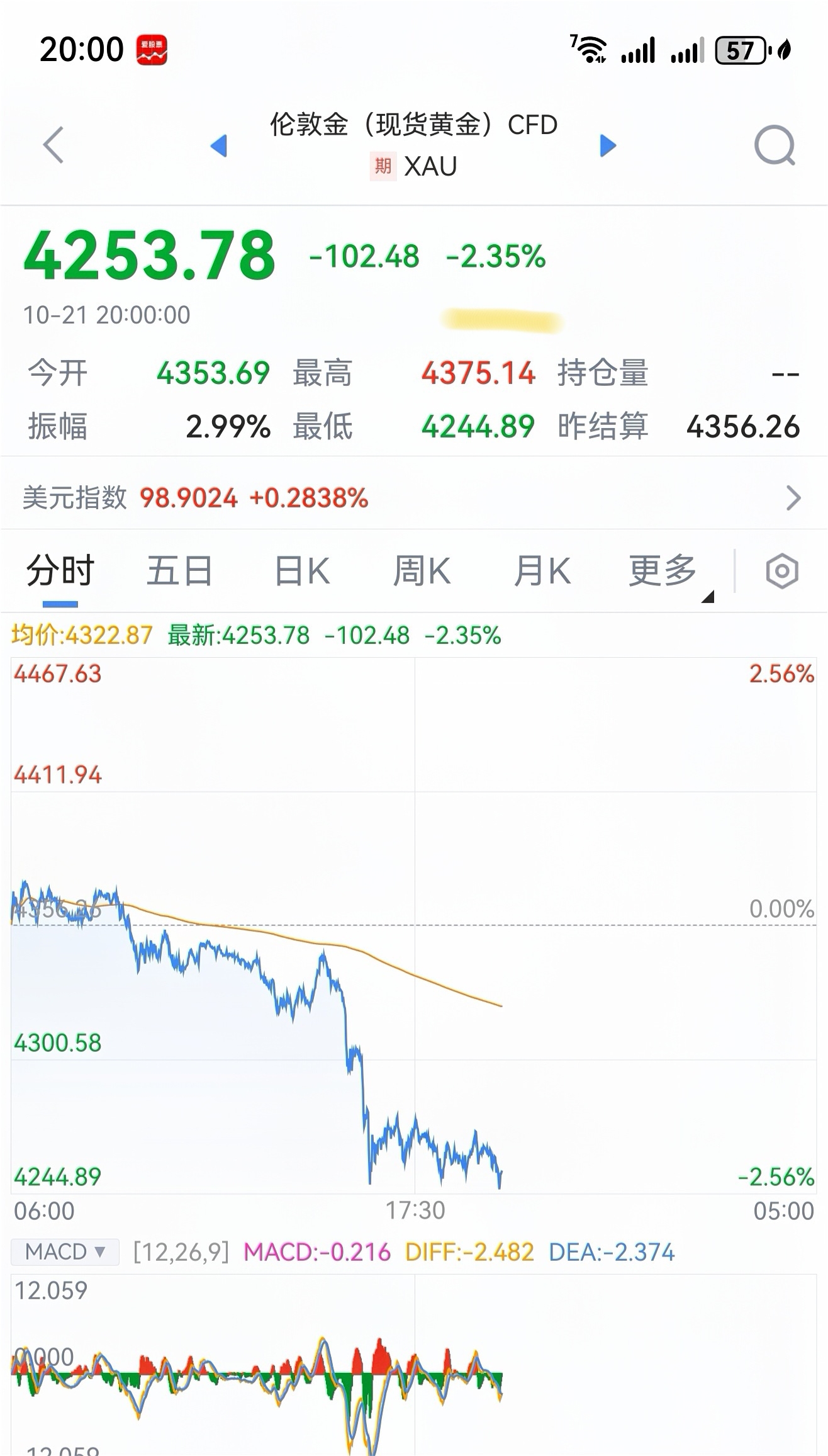 在今天晚上20点,观察现货黄金是大跌-2.35%