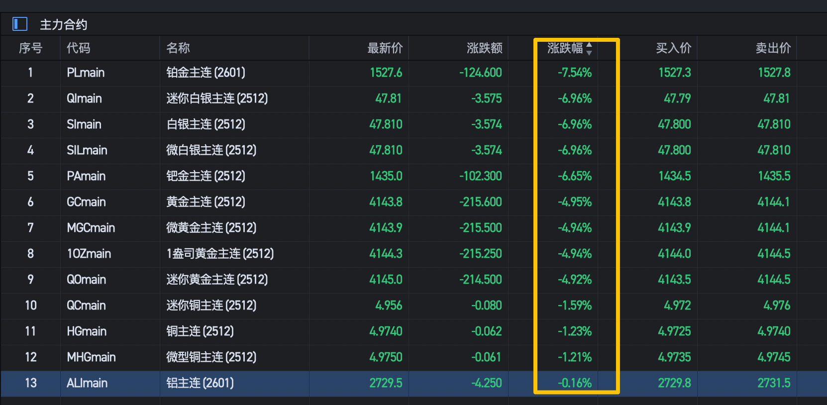 今天晚上金属有色期货全线大幅下跌啊。具体表现如下: