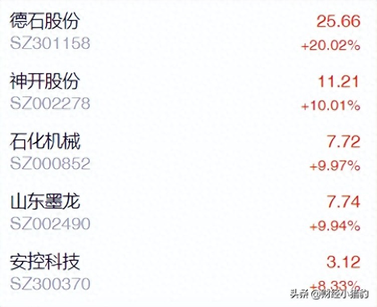 油气服务板块突然集体活跃,德石股份20cm涨停,神开股份、石化机械双双封板。