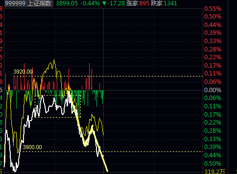 早盘黄线引领白线,中途两线同步,现在黄白分叉,白上黄下