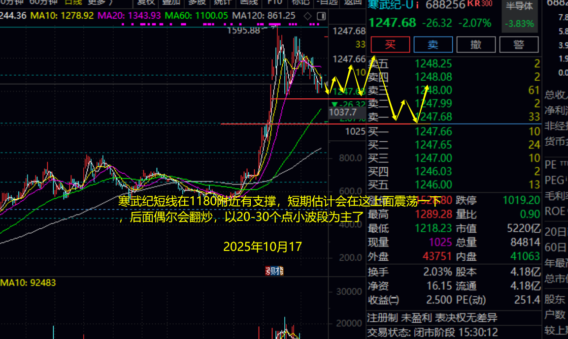 算力芯片代表:寒武纪短线在1180附近有支撑,短期估计会在这上面震荡一下,但是短期难新高了,如果大盘大回踩,还可能将其压制到1100附近震荡,后面偶尔会翻炒,以20-30个点小波段为主了。国产光刻机的话WDZ相关概念股可以留意,这里不展开了。