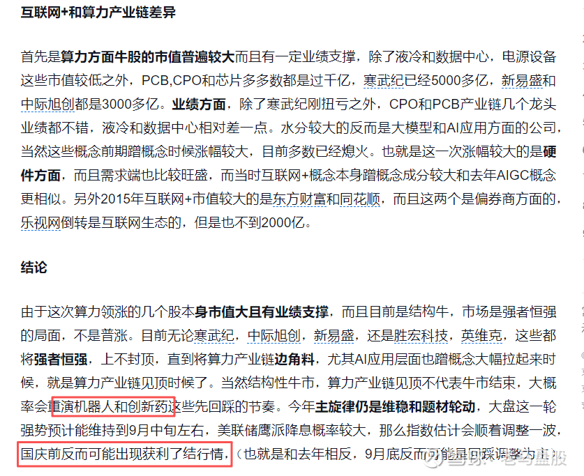 2025年8月底在发布了《算力能重演2015年互联网+行情吗?》,分享了算力产量链的自身特点,并提醒了国庆节前获利了结。目前看来大趋势上是符合预期的,只不过细节和个股回踩有差异。目前算力炒作没有完全延伸至AI应用就开始熄火,主要是去年AIGC方面已经提前炒作,而且AI应用单独上市的不多,多数都在大厂手里,所以类似去年AIGC那种蹭概念的逐渐熄火了,情绪传导到云服务方面就已经接近尾声(参考甲骨文,阿里巴巴走势)
