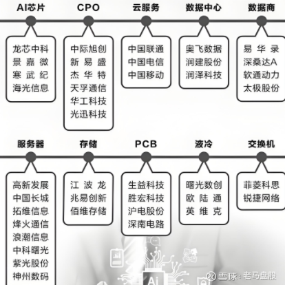 在终端应用方面,国内上市公司主要关注阿里巴巴,腾讯和快手,这些前面都有分享过,这里就不再赘述,后面会慢慢跟进。算力概念股较多,随着大盘恐高情绪渐浓,后面逐渐收缩在有业绩的头部为上,不宜全部布局,大家根据自己喜好来。