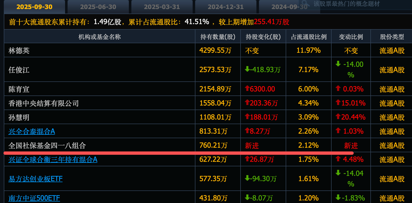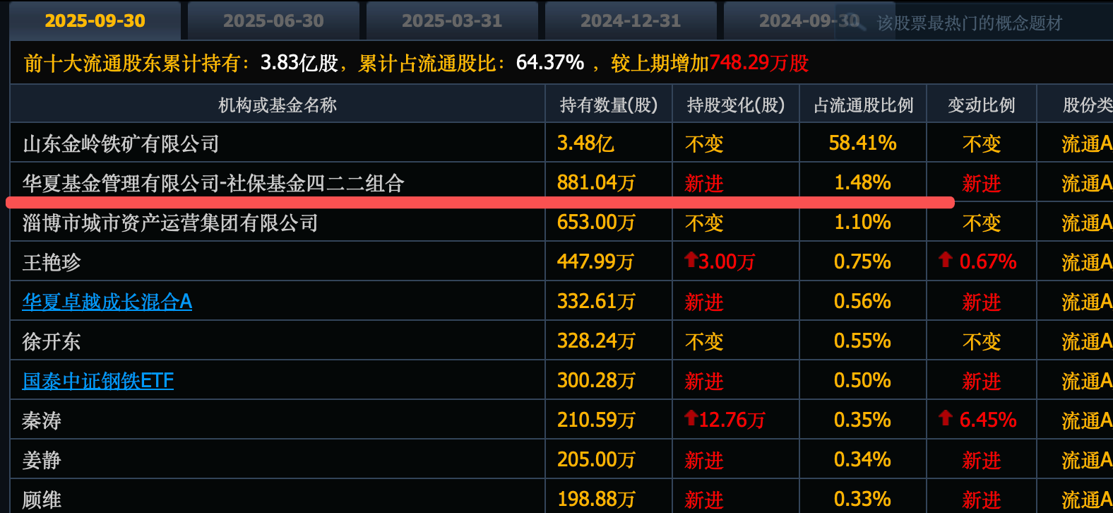 社保基金422组合刚刚新进764万股,位列第六大股东。