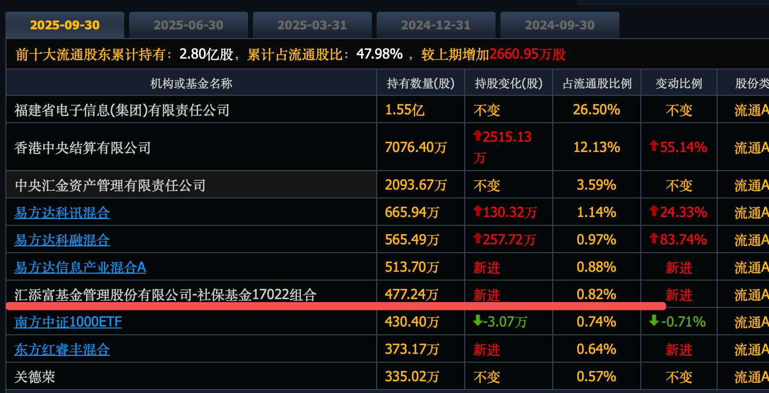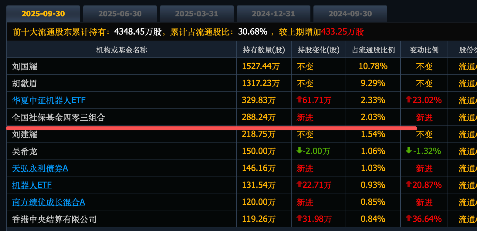 社保基金17022组合新进477万股,位列第七大股东。
