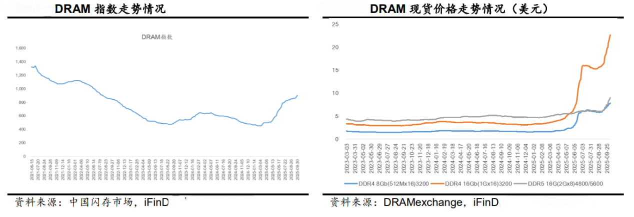 国际存储芯片巨头将传统制程产能全面转向HBM/先进节点,Micron停产DDR4导致结构性短缺,DRAM供应商库存已降至不足两周。需求侧,AI服务器带动存储需求成倍增长,单台AI服务器的DRAM和NAND需求分别是普通服务器的8倍和3倍。Q3 PC DDR4合约价涨幅达18-23%,服务器DDR4涨幅8-13%,Q4涨价趋势延续。NAND Flash Q3合约价涨幅上修至5-10%,企业级SSD订单激增。这种供需失衡预计持续4-6个季度,构成行业上升周期的核心支撑。