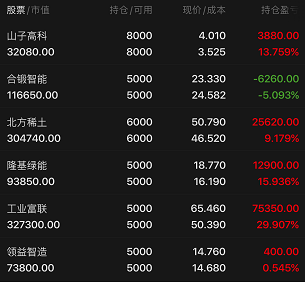 看着合锻智能的逆势上涨,我既感到欣慰,也有些遗憾——欣慰的是持仓中仍有亮点,遗憾的是仓位配置还不够均衡。
