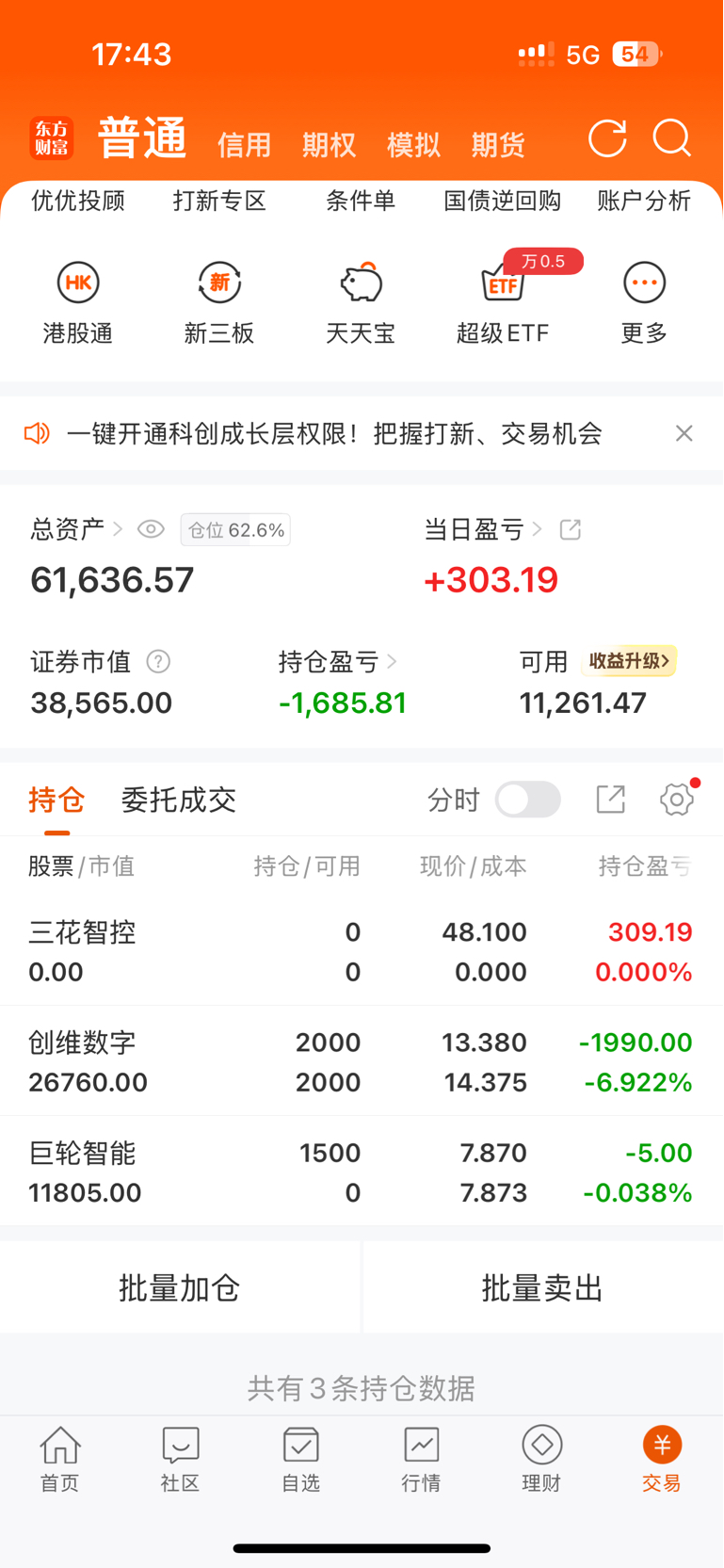 #炒股日记# 记录第1天,今天三花崇高,中午没接回来,有点可惜,看看巨轮明天的表现