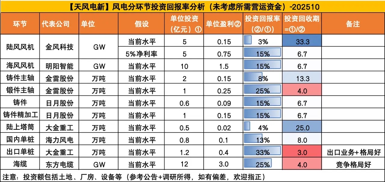 风电各环节roic测算供参考,还是那句话#风电的好处是所有人对陆风需求真的悲观,
