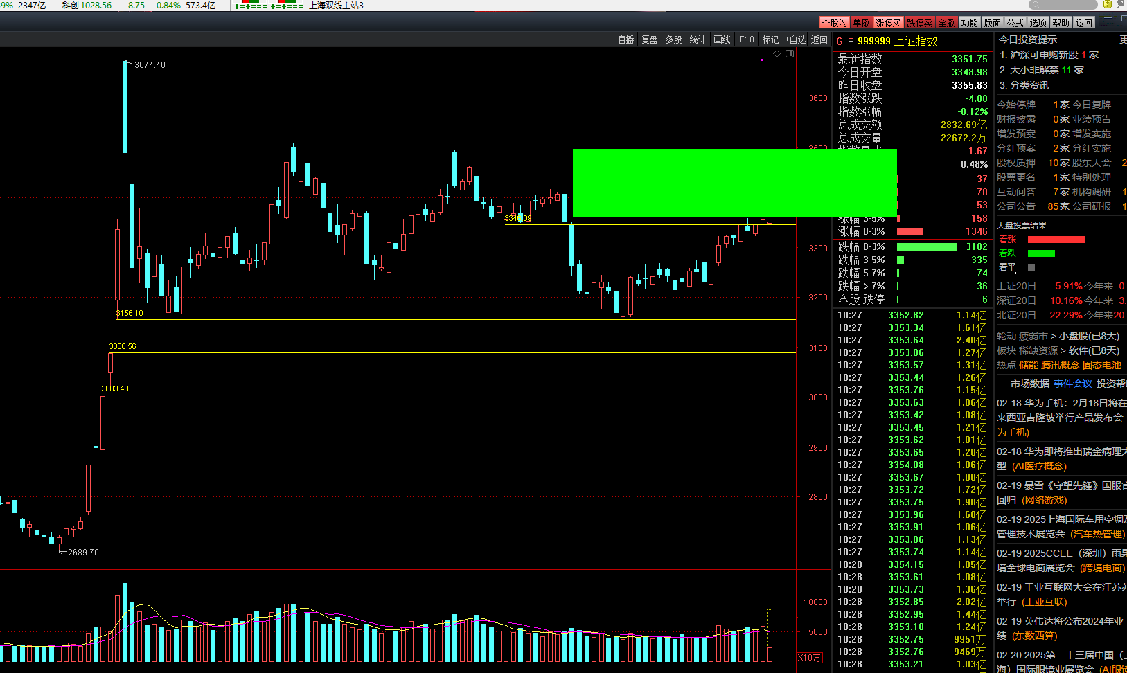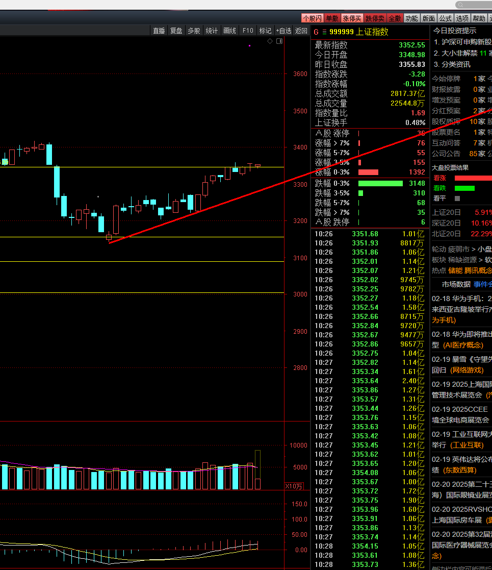 当前市场已具备放量突破的契机,只差“一把火”,也就是需要国家队在关键位置发力。前期春节前被跌破的重要支撑位,如今已转变为压力位,但在当前资金面乐观的形势下,该压力位很有可能被突破。综合技术面、资金面和情绪面分析,3350平台在短期修整后,有望在增量资金带动下实现突破。一旦突破并站稳,市场将进入中期强势状态。