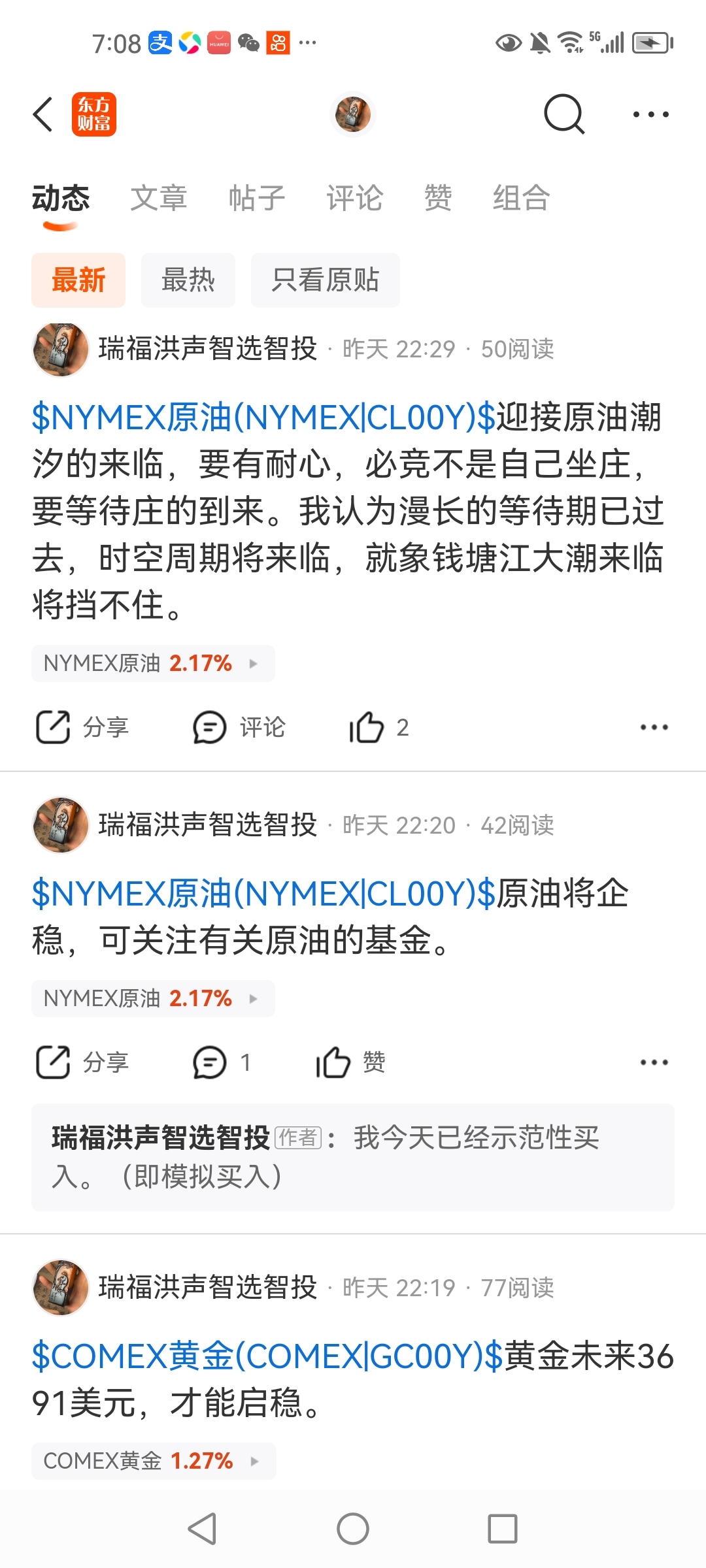 网上说,有人暗中研究我,我只是东方财富上众多普通股民一个,有必要花心思研究我吗?如果事实,铁证如山,那么,就是研究我原创文字干货,如何产生的?是不是,越研究,网络影响也越大。难道美国机构投资者,不研究我吗?我昨晚写原油潮汐将来临,今早醒来,原油已启动,这不是机构投资者所为吗?