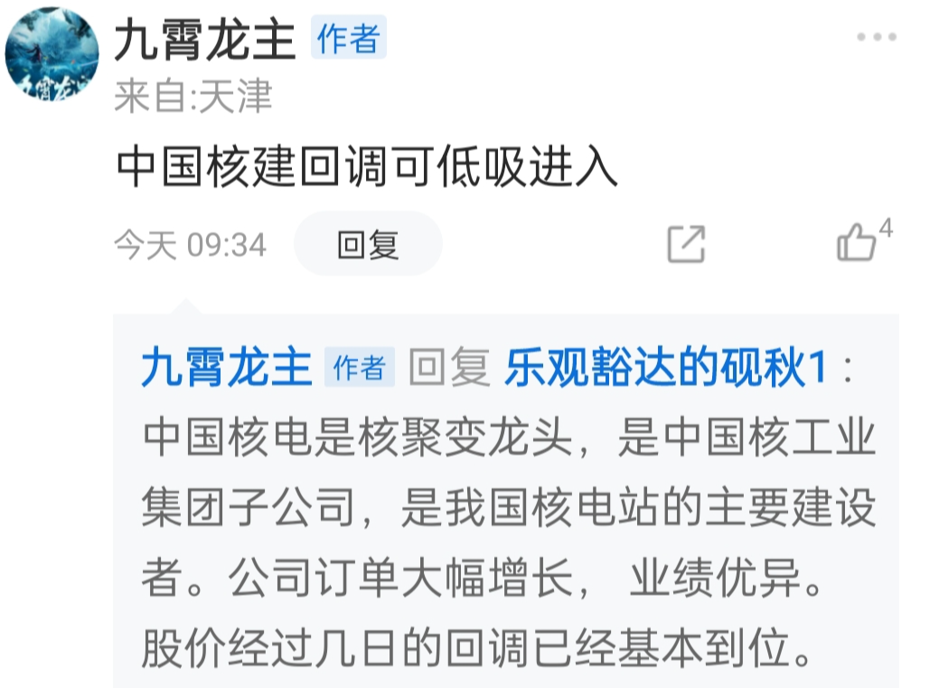 中国核电是核聚变龙头,是中国核工业集团子公司。是央企,自带各种姿源、技术优势。他是我国核电站的主要建设者,华龙一号也是中国核建参与建设的。是全球唯一连续40年不间断核电建造企业,龙头低位稳固。他也是未来核聚变电站的主要参与者,有丰富的想象空间。公司订单大幅增长,近几年业绩优秀且稳步增长。经过前几日的价格回调周二已经基本到位,昨日上午在低位就做了一些低吸。