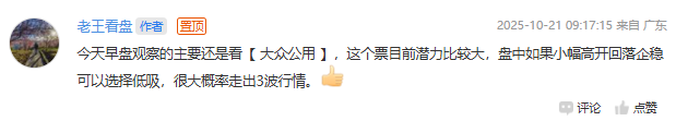 大众公用:公司业务布局多元且稳健,叠加板块轮动中资金的关注度提升,前期已形成明确上行通道。昨天走出的阴线,我当时的观点就是洗盘,今天也是一样的,只要燃气板块今天走强,它再次出大阳线的概率也是非常大的,所以今天只要不跌破5日线,就可以选择继续格局。