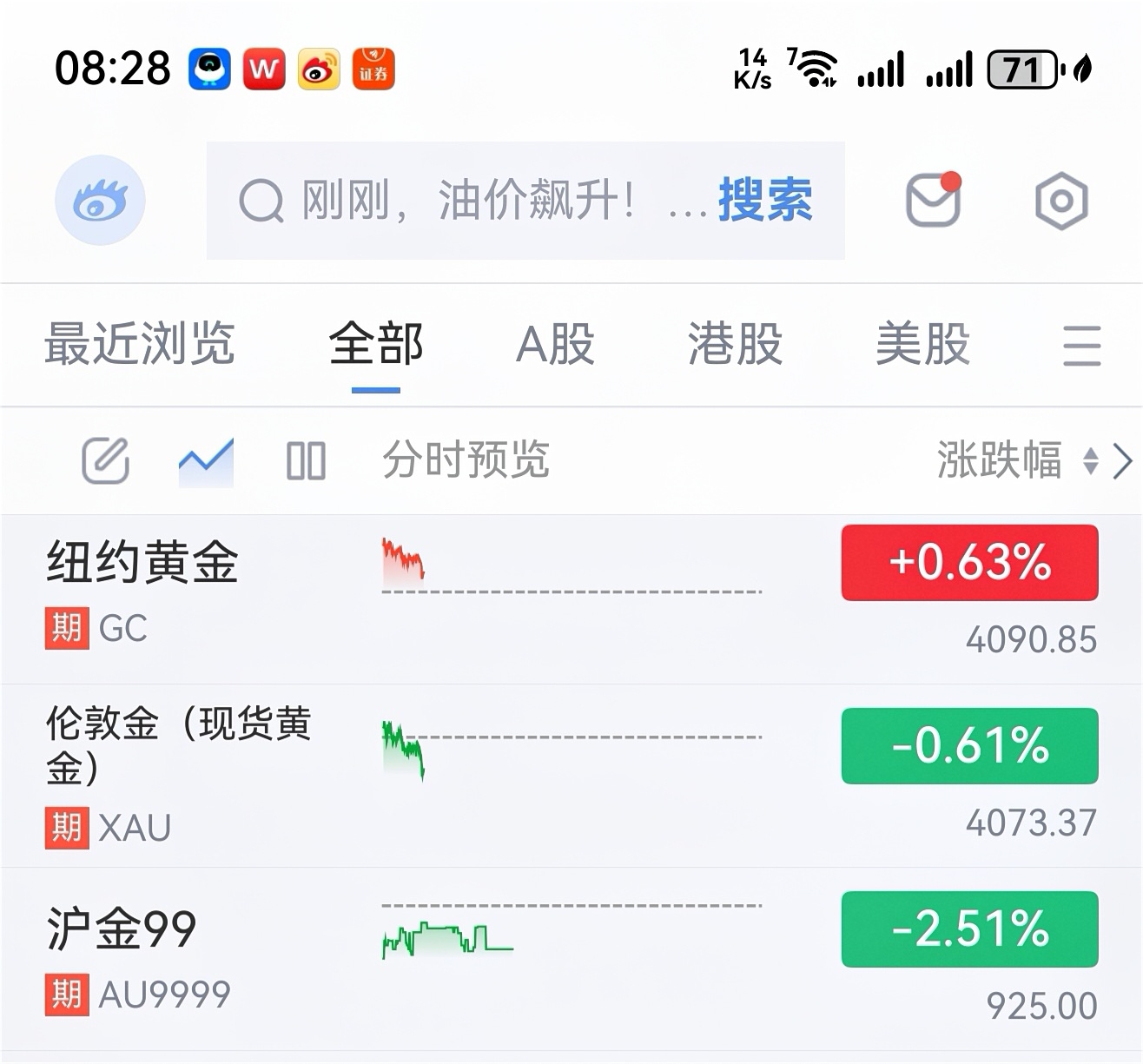 在今天上午8点28分,观察现货黄金是跌-0.61%