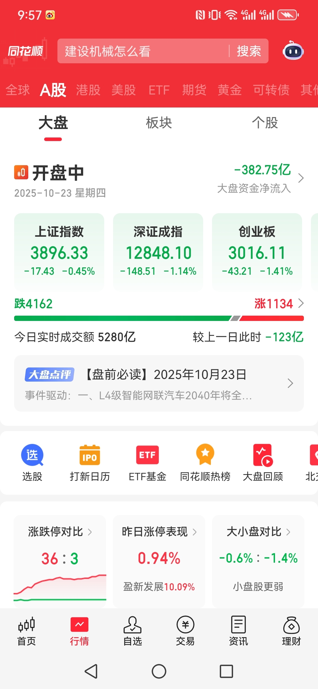 截止目前上涨家数不到1000家,下跌家数接近4300家,创业板指数跌幅超过1%上